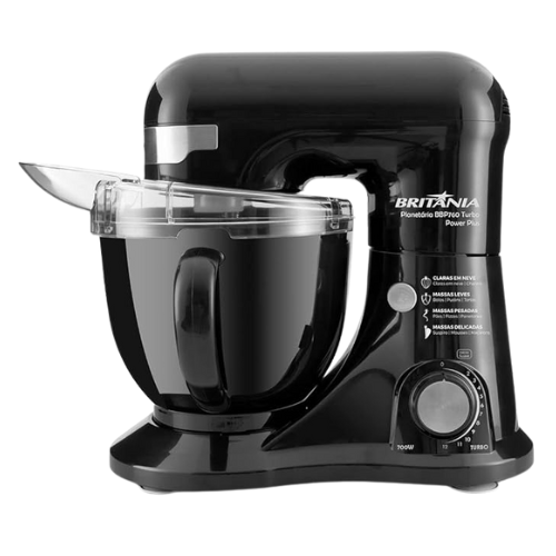 A potência de 700 watts da Batedeira Planetária Britânia BBP760P é evidente, especialmente ao trabalhar com massas de pão, evitando a fadiga ao misturar ingredientes pesados.