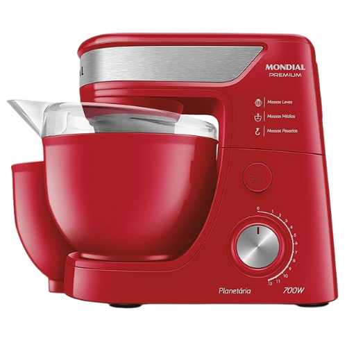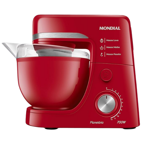 Com 700W, a Batedeira Planetária Mondial BP-03-R mistura os ingredientes de forma rápida e eficiente, garantindo que até as massas mais pesadas não sejam um desafio.