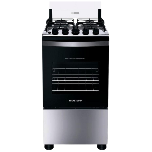 O Fogão Brastemp 4 Bocas Inox nos chamou a atenção por possuir um design elegante com prateleiras ajustáveis, que acomodam panelas de diversos tamanhos.