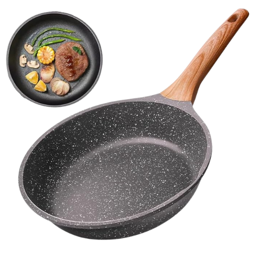 Uso a frigideira tanto para preparar omeletes quanto para grelhar carnes. Ela distribui bem o calor e os alimentos ficam cozidos por igual.